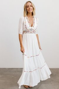 > Plus sized: Empire-waist dresses are super flattering and emphasize the smallest portion under the bust to create the effect of a slender silhouette from top to bottom. If your arms make you feel self conscious - I recommend flutter sleeves.